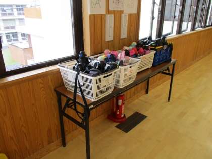 給食には関係ないけれど、3密をさけるために水筒は廊下に置いています。