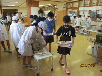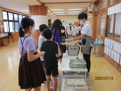 全員が配膳し終わると、少なくしたい子・多くしたい子がそれぞれ調節しに行きます。