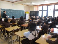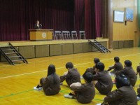 角長醤油を出発するのが30分遅くなったのですが、道中順調に進んだようで、予定時刻に学校に到着しました。