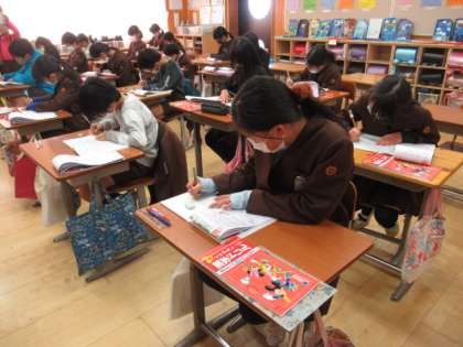 計算ドリルで学習の定着を図っています。2けたでわるわり算の筆算の学習でしたが、みんなどんどんできていてびっくり。