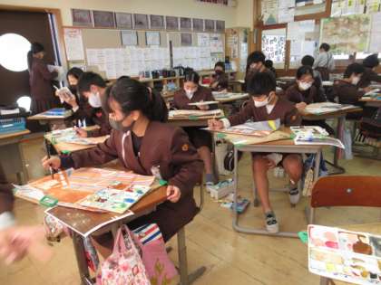 思い出の校舎を描いていました。一人ひとり思い出の場所って違いますよね。
