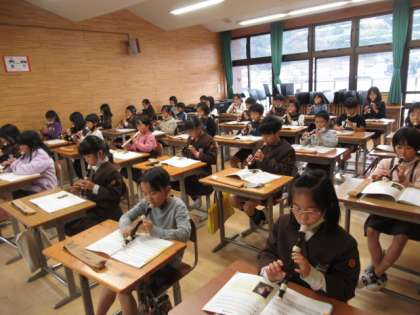よろこびの歌のリコーダーの練習で、みんなが難しいと感じていることを発表しています。一人ひとり、難しい理由もきちんと話すことができています。