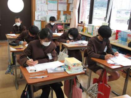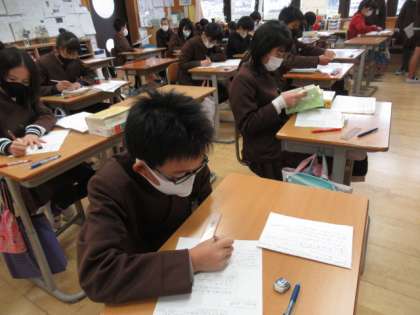 卒業文集の下書きを先生に読んでもらって清書に取りかかります。