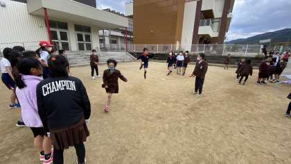 今日と明日の昼休憩に、体育委員会が大なわをまわしてくれています。