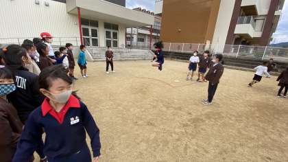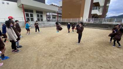 高学年のお兄さん・お姉さんがなわをまわしてくれて、学年問わず色んな子達が参加しています。
