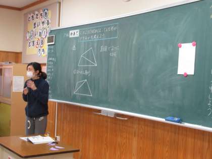 辺・頂点など算数用語をきちんと使って発表できていて良かったです。」
