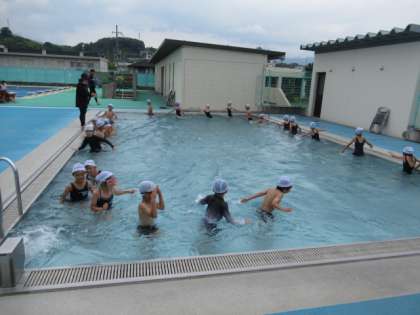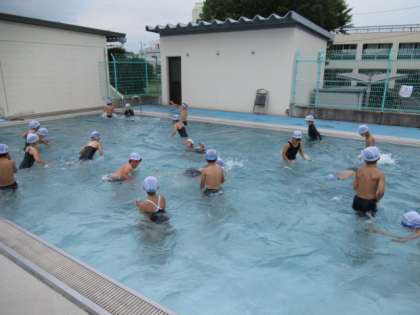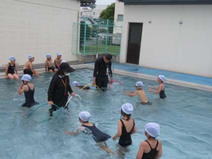 はじめは少し緊張気味でしたが、宝探しやフラフープくぐりで楽しく水に慣れることができました。