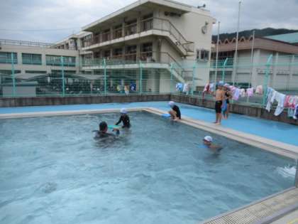 大きな雲が覆ってきたので心配されましたが、何とか雨も降らず、水泳大会ができました。