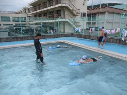 ビート板を持たずに最後まで泳げる子がいたり、苦手だけどあきらめずに挑戦する子がいたりとみんなの頑張りが見られました。