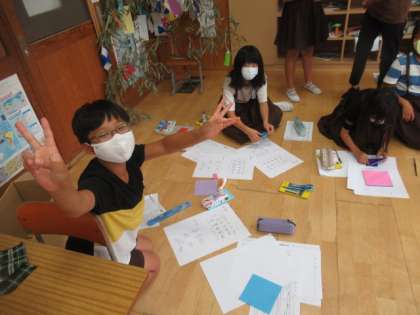 芸術クラブは前回の作品にニス塗りをしたり、折り鶴をつくったりしました。