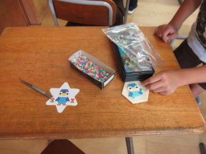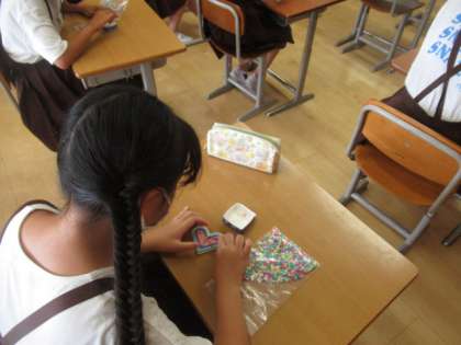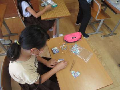 家庭科部ではアイロンビーズ作りにチャレンジです。