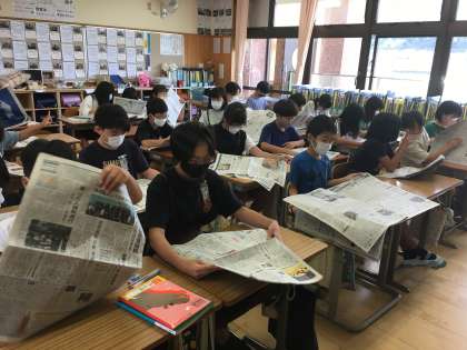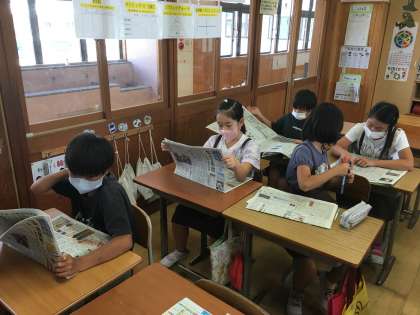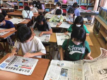 スポーツ欄やテレビ欄、地域、政治、株など、沢山の情報が載っていて、子どもたちは興味深く読んでいました。