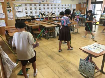 掃除の時間、一人一人がスピードと分担を意識しながら清掃活動をおこなっています。