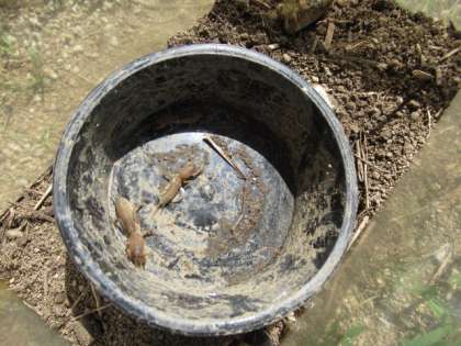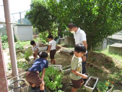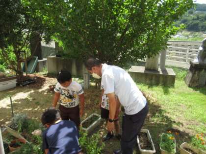 少しプランターを動かすと、ダンゴムシやミミズ、ケラなどたくさんの虫が隠れています。