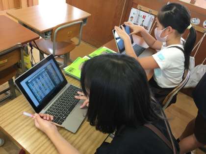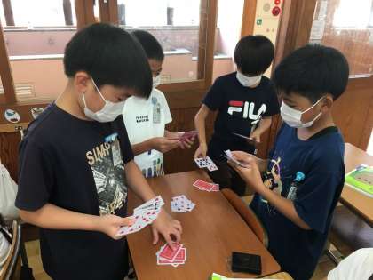 昨夜の雨で運動場の状態があまり良くなく、教室で休憩時間を過ごしています。