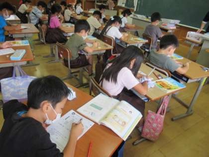 2年生、どちらのクラスも集中して課題に取り組んでいますね。