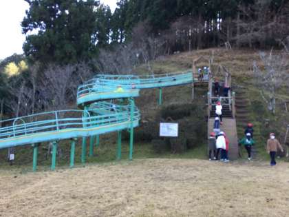 ロング滑り台で楽しんでいます。