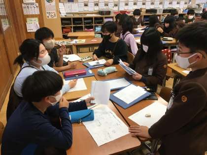 総合的な学習の時間では、12月に行った森林体験・宿泊学習のまとめをおこなっています。