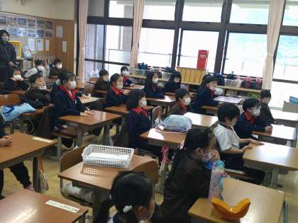 6年生のお姉さんたちが優しく読んでくれるのを静かに聞いていました。