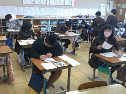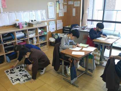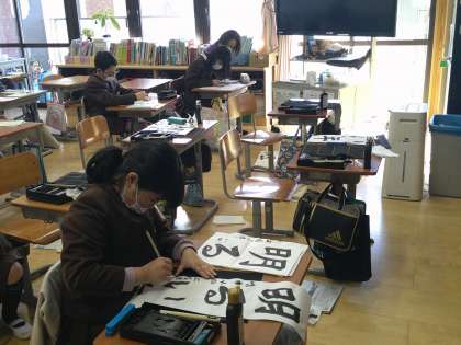 硬筆、毛筆それぞれ自分が選んだ部門でていねいに書いています。