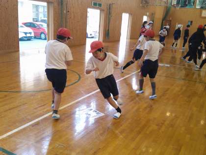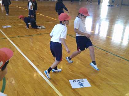 吹き矢、抜き足、ササササ、水とんの術などいろいろなお題に沿って体を動かしました。