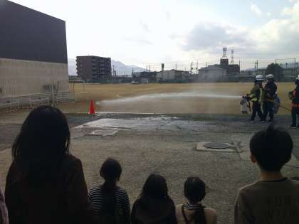 中学校の2年生が職場体験学習の一環で、警察車両の見学や消防車による放水体験などをしていたので、空いている時間にお邪魔して少し見学をさせてもらいました。