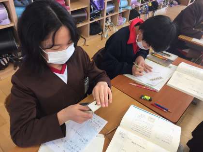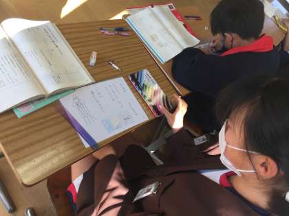 国語科では、詩を読んで、面白いと思った内容や工夫されているところを考えて交流しました。