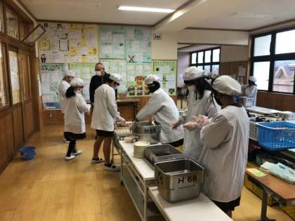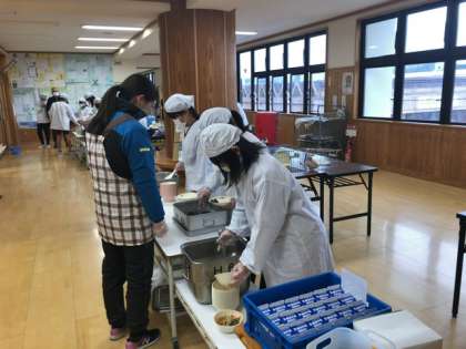 高学年給食準備