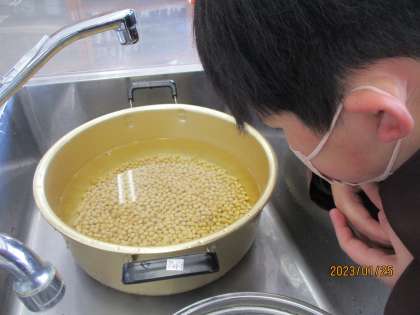 また、大豆を水洗いし、水に浸しました。明日はどんなことをするか、楽しみですね!!