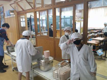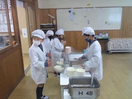 給食の準備ができるまでは自分の席で静かに待ちます。