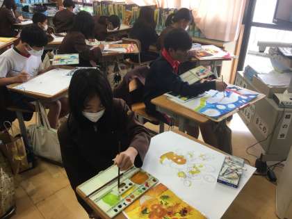 図画工作科では「世界の名画」に挑戦しています。