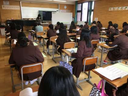 はじめに県民歌を口ずさんでから授業がスタートしています。