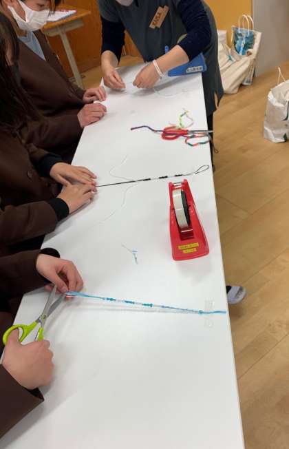 高学年ともなると複雑な編み方ができるようになってきます。前回の4年生よりも難しいハート型に挑戦する児童もいました。