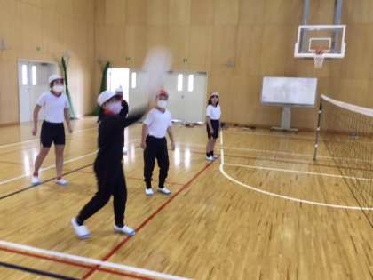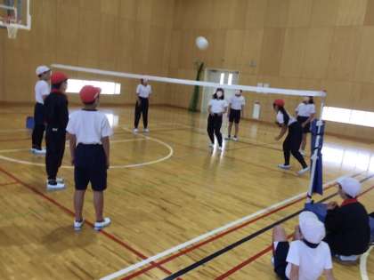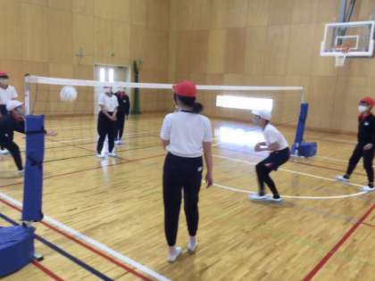 体育科ではソフトバレーボールで簡易ゲームをおこないました。