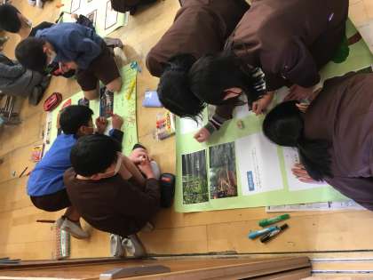 総合的な学習の時間では、森林体験や宿泊学習で学んだことを4年生に伝えるための準備をしました。