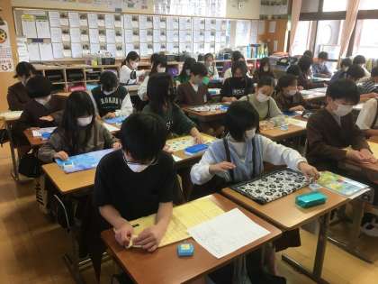 家庭科では、生活に役立つものを作ろうということで、布を使って「小袋」を作ります。