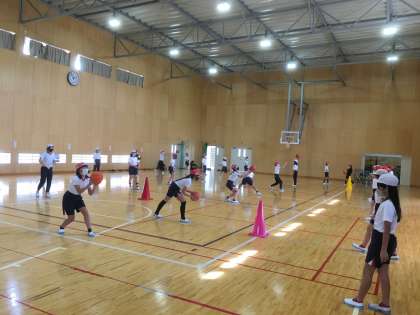 ポートボールとの違いやパス、シュートのポイントなどを確認し、練習しました。