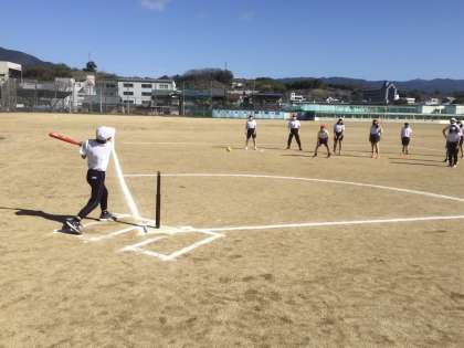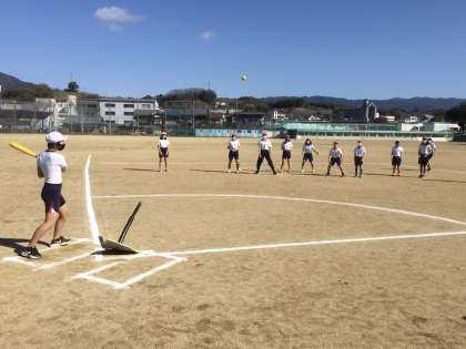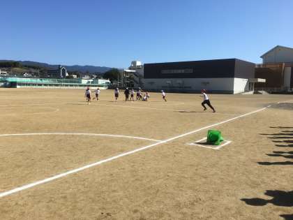 今日は体育館が使えなかったので、運動場でティーボールをしました。