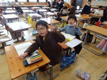 中でもお絵かきが人気です。先生におねだりして書いてもらったり、歴史上の人物の名前をたくさん書いている子も・・・