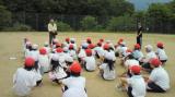 午後から最初の活動は、グランドゴルフです。校長先生の始球式でスタートします。