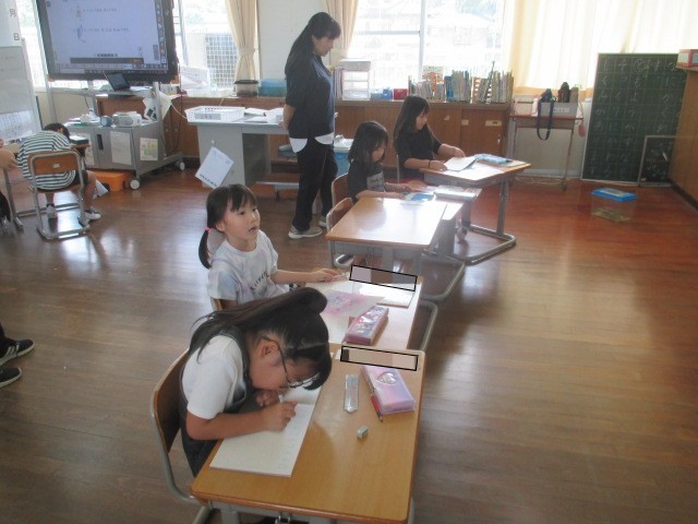 1年生の算数では「3つの数のけいさん」をしていました。今日は「18-8+2」などの計算を解いていました。