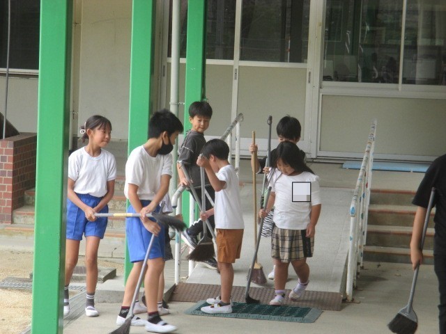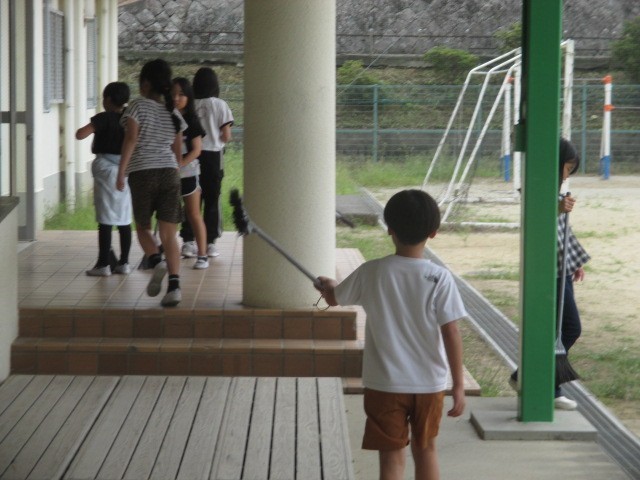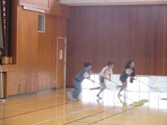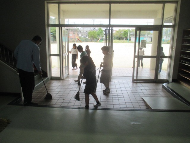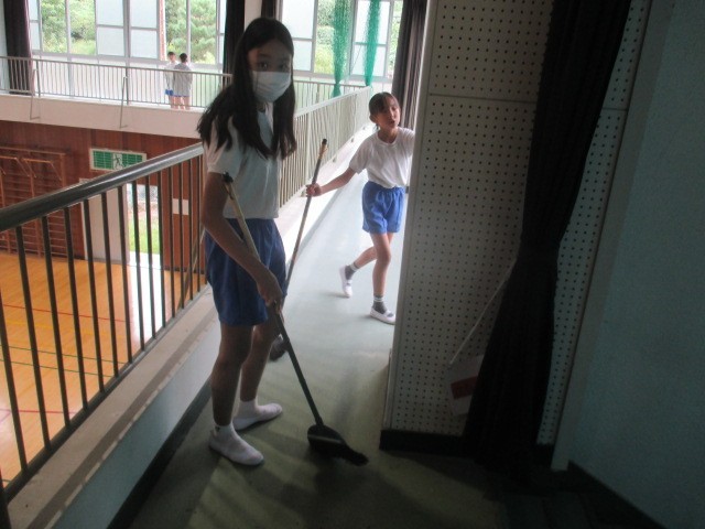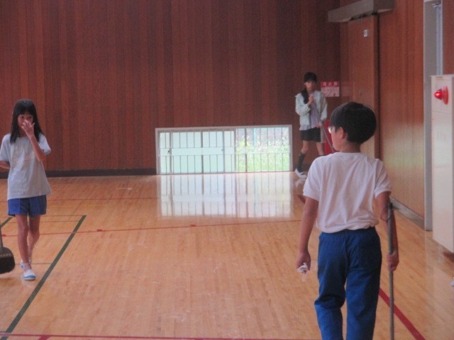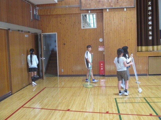 今日の掃除の時間に、全児童で体育館の掃除をしました。体育館がすごくきれいになりました。児童のみなさん、ありがとうございました。