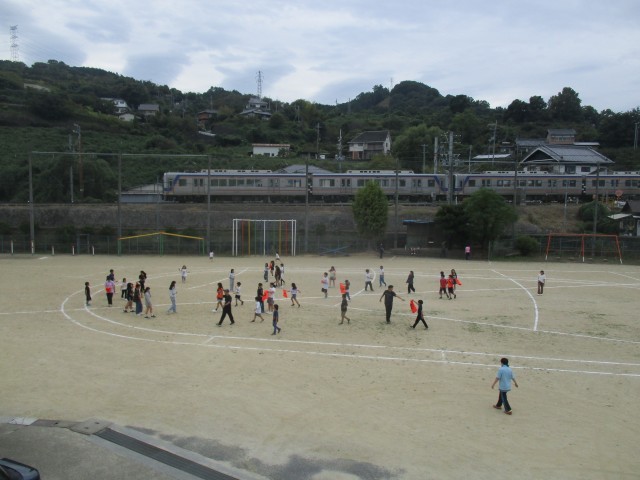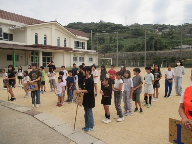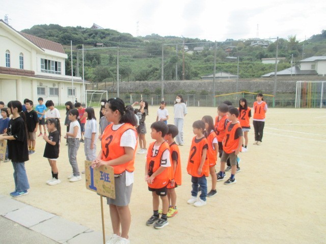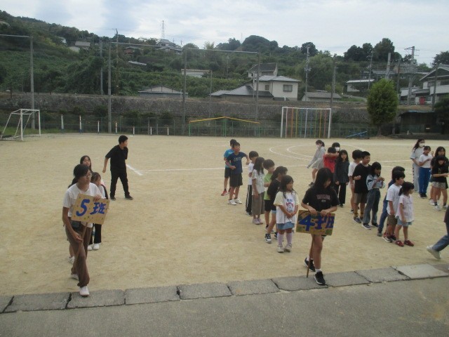 児童会が1学期がもうすぐ終わるということで全児童で逃走中と題して(ケイドロ)を企画してくれました。縦割り班に分かれてゼッケンを来ているのがハンターです。みんなハンターから逃げ回っていました。楽しい時間は、あっという間に過ぎました。児童会のみなさん楽しい企画ありがとうございました。