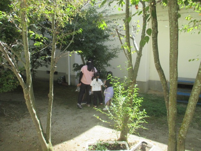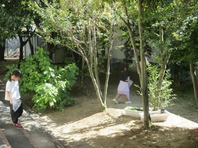 1年生の生活では、栗の木の近くで秋見つけに行っていました。どんな秋を見つけたのかな。
