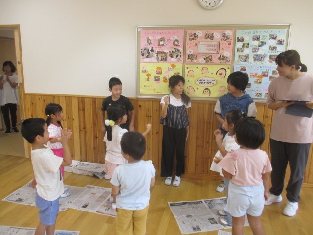 9日 学文路さつきこども園訪問④(新聞紙じゃんけんグループ)