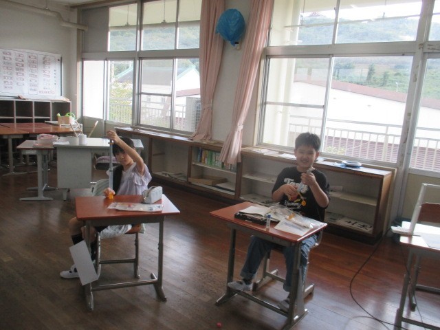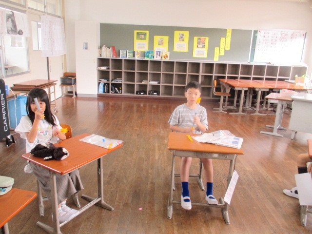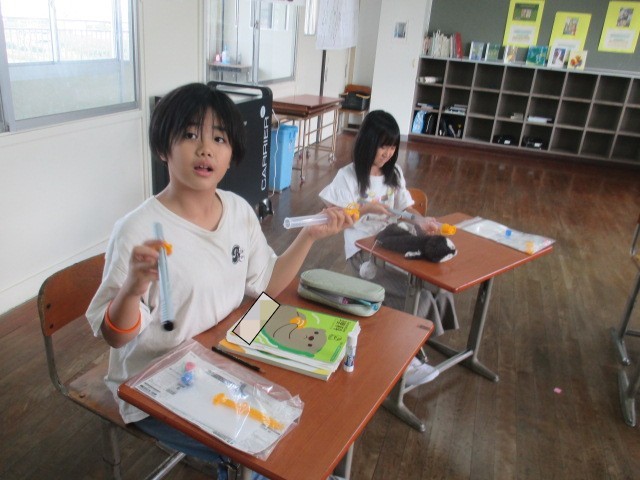 4年生の理科では「とじこめた空気と水」の単元で、今日はとじこめた空気をおすと、空気はどうなるかを教材キットを用いて実験しました。