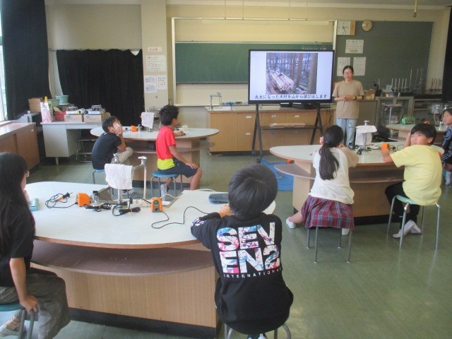 5・6限目に5年生を対象に高野山森林組合の方が来てくれ林業について学習しました。林業って何をしているのか?切った木はどこに運ばれていくのか詳しく説明をしてくれました。6限目はウッドバーニングをしました。出来上がりはどうかな。