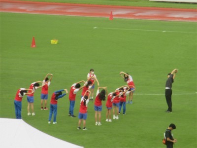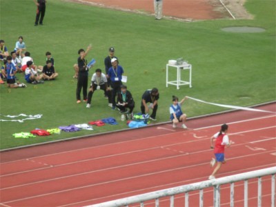 本日、サカイキャニングスポーツパーク(橋本市運動公園)で橋本市・高野町小学校学童陸上記録会へ6年生が行ってきました。運動公園に着くとまず、準備体操をしました。開会式の後、女子の400mリレーの予選がありました。その後、午前は女子の走り幅跳び・男女100m走・男子ソフトボール投げの種目がありました。