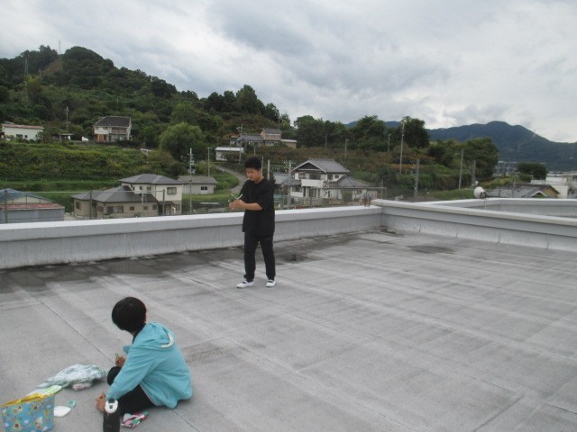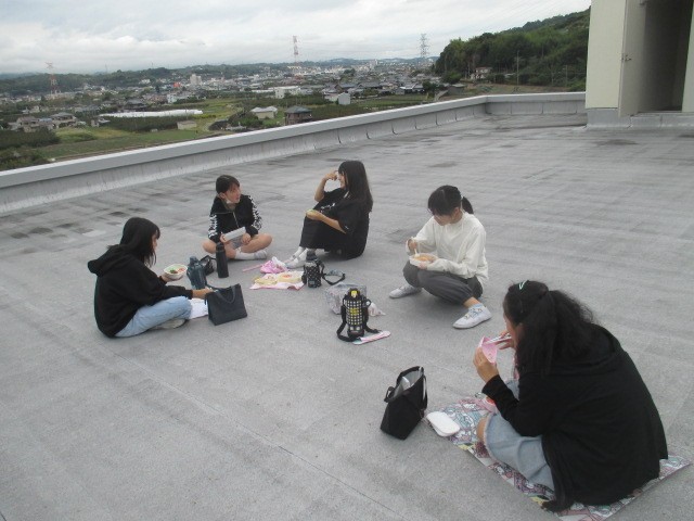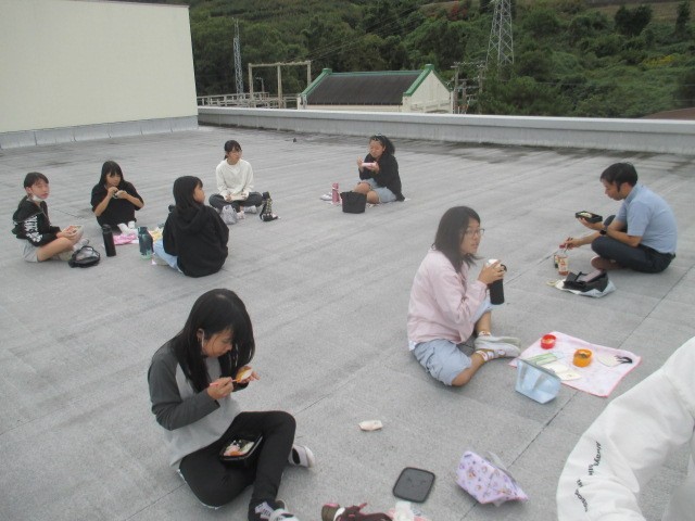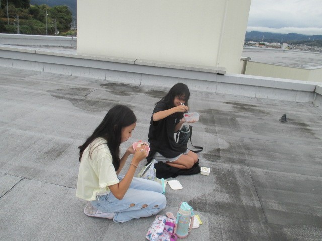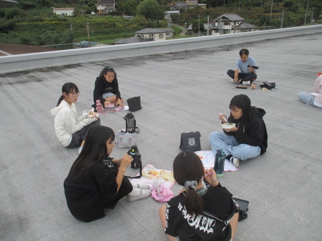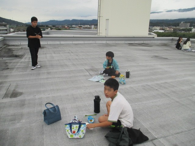 昨日の陸上記録会の予備日だったため6年生は今日は弁当日でした。学文路小学校の思い出にみんなで屋上で食べました。