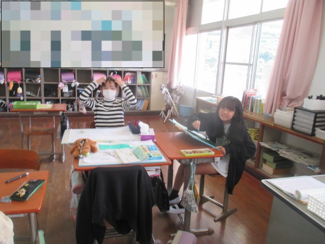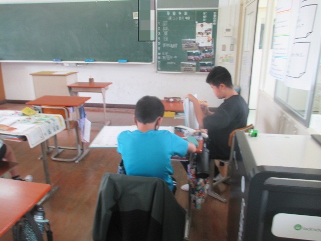 6年生の図工は「学文路小学校で自分の思い出の場所」を描いていました。教室・廊下・図書室など一人ひとり思い出の場所が違いますね。